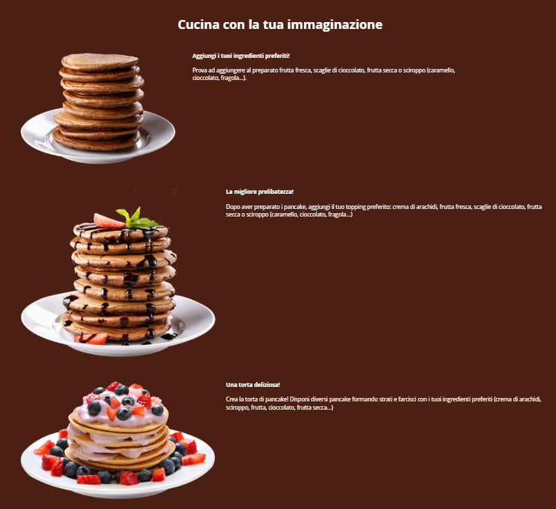 I tuoi pancake con il 55% di proteine* sono un'opzione sana che aggiunge proteine dall'elevato valore biologico ad ogni pasto.